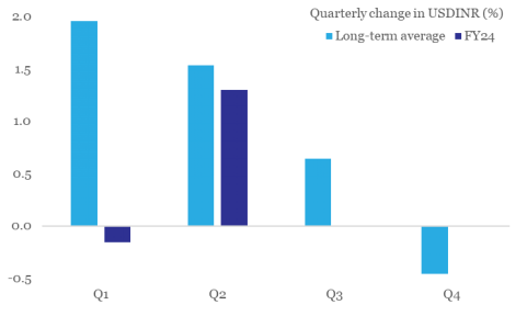 Chart 5: Adverse Q2 seasonality is catching up with rupee