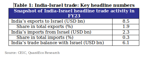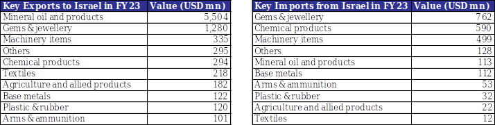 Overall, Israel’s commercial importance for India goes beyond official merchandise trade statistics as: (i) G2G defence trade is not reflected (and Israel happens to be amongst the key suppliers of military equipment to India), and (ii) services trade between the two nations have started to pick-up in areas of cyber security, homeland security, and R&D in high-tech sector.