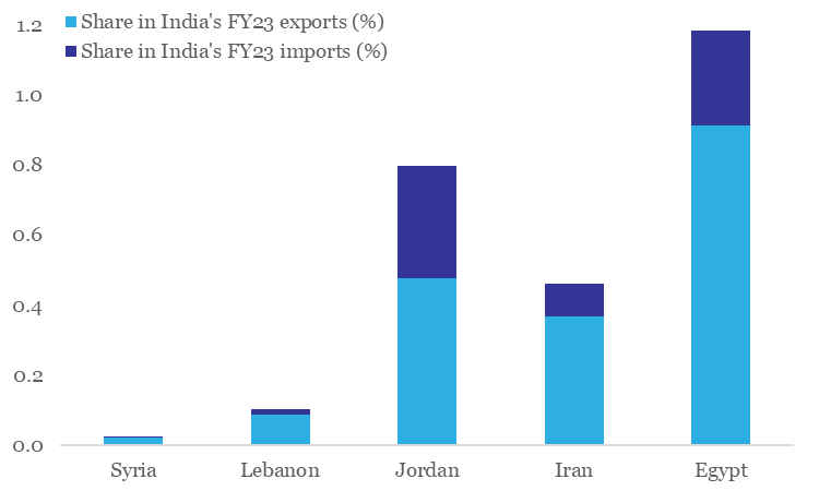 As long as the conflict continues only between Israel and Palestine, wider global trade disruptions are likely to be minimal. However, it is important to be vigilant as the situation could potentially turn into a proxy war with involvement of neighbouring countries like Syria and Lebanon, along with some mild unrest in the wider Middle Eastern region. In a worst-case scenario, escalation could turn into a full-fledged war if countries like Iran, Egypt, Jordan, etc. are drawn in – in such a scenario, the unrest in the Middle Eastern region could intensify, with the likelihood of a serious setback to global trade.