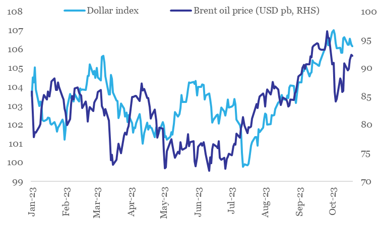 - US economic resilience has been a positive surprise, which has benefitted the dollar.