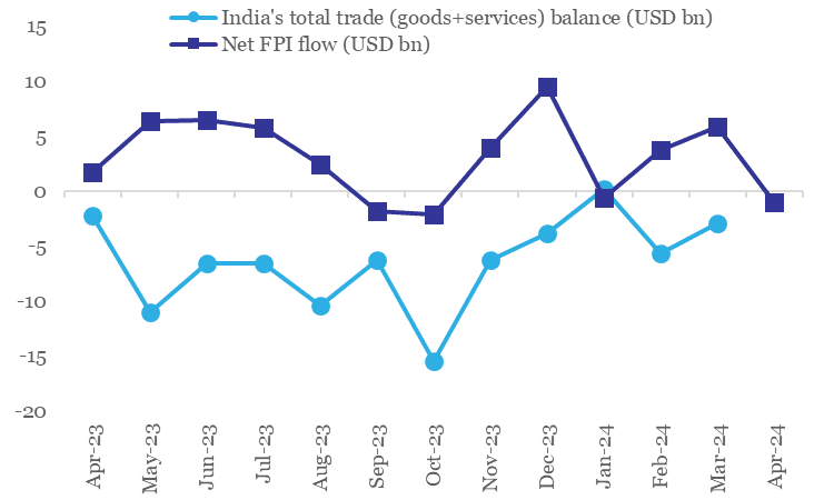 Chart 3: While total trade deficit remains moderate, portfolio inflows have lost momentum in recent weeks