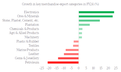 Chart 2: Despite contraction at an aggregate level, there was wide variation in the performance of key export categories in FY 2023-24