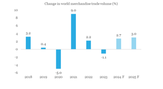 Note: Values for 2024 and 2025 are forecasts by the WTO