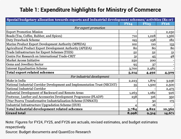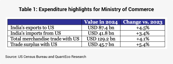 While that’s encouraging, specific allocation towards export promotion under the Ministry of Commerce will see a marginal decline to Rs 4309 cr in 2025-26 from Rs 4492 cr in 2024-25. This will primarily be on account of expiry of the Interest Equalisation Scheme. Having said, the commerce ministry is expected to raise its contribution towards promotion of domestic manufacturing via sharp increase in allocations for Make in India and National Industrial Corridor.