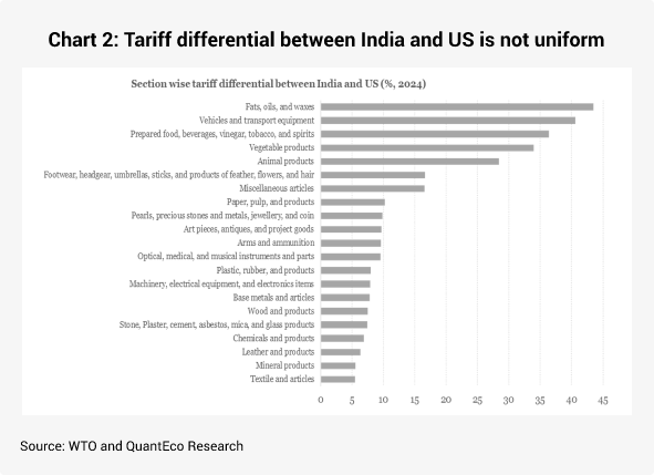 · The tariff differential between India and US is under 10 percentage point for 66% of goods