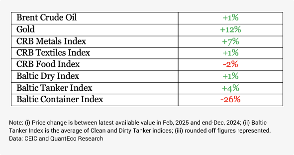 The spectre of tariff related disruption to global merchandise trade appears more plausible than ever before. In less than one month of assuming office, US President Trump has caused tremors in the hitherto prevailing merchandise trade arrangements. The new administration has implemented 10% tariffs on all imports from China. A universal tariff of 25% on steel and aluminium has also been announced, while the announced 25% tariffs on all imports from Mexico and Canada is currently on pause until the end of Feb-25. The Trump administration has also announced its intent to impose reciprocal tariffs starting Apr-25, with coverage extending to all trading partners to achieve equalization of tariff rates with the US.