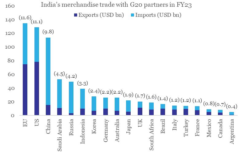 Chart 1: G20 partners have ~64% share in India’s merchandise trade