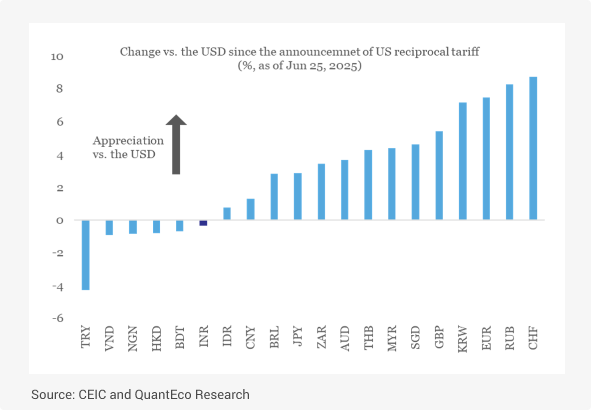 After two back-to-back months of appreciation in February and March 2025, the Indian rupee posted a modest depreciation of 0.5% in May 2025 vs. the US dollar. The month of June 2025 so far has witnessed an extension of this trend, with INR losing 0.5% vs. the USD.