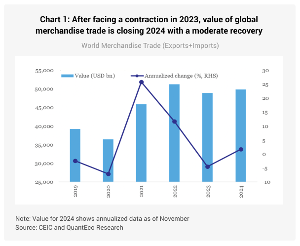 - The value of global merchandise imports clocked a mild expansion of 1.7% between Jan-Nov 2024 compared to a contraction of 5.6% seen in the corresponding period in 2023.