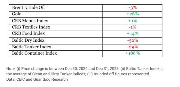 In this month, we take stock of the performance of global merchandise trade in 2024 along with India’s relative position. Global trade faces considerable uncertainty from the likelihood of another US led tariff war in 2025. We also undertake a quick assessment of US and India’s monetary policy along with the outlook on the Indian rupee.