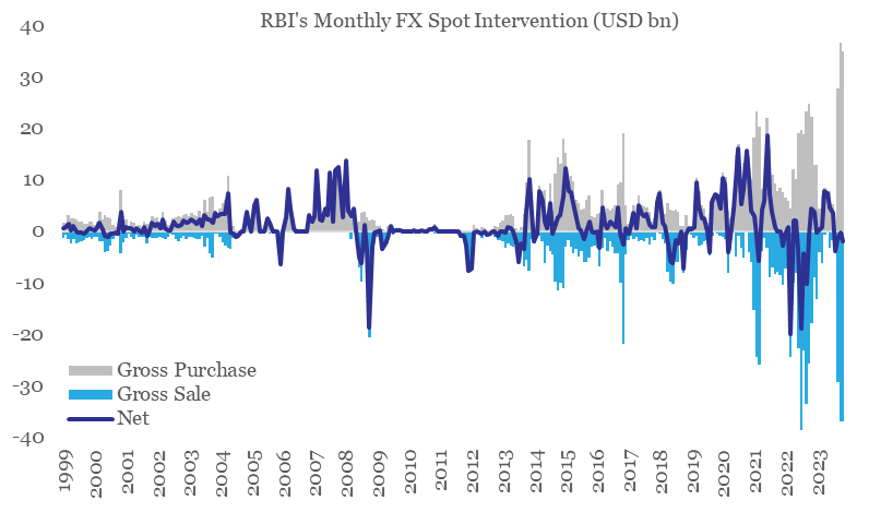 Chart 4: In recent months, FX market has seen record levels of intervention from the RBI