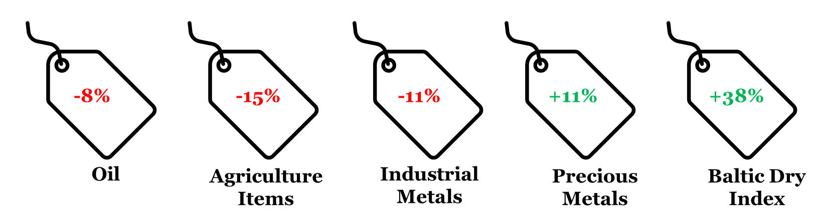 Note: (i) Price change is between Dec 22, 2023 and Dec 31, 2022; (ii) Oil price is represented by Brent; (iii) Agriculture Items, Industrial Metals, and Precious Metals are represented by respective Bloomberg Commodity indices; (iv) rounded off figures represented.